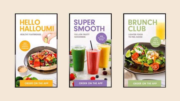 At Eat With Your Eyes, I played a part in producing digital screen assets for David Lloyd's summer menu launch. I designed vibrant digital posters spotlighting their food offerings outside their clubs, enhancing them with subtle motion for visual impact. These assets were deployed across all David Lloyd health clubs nationwide.